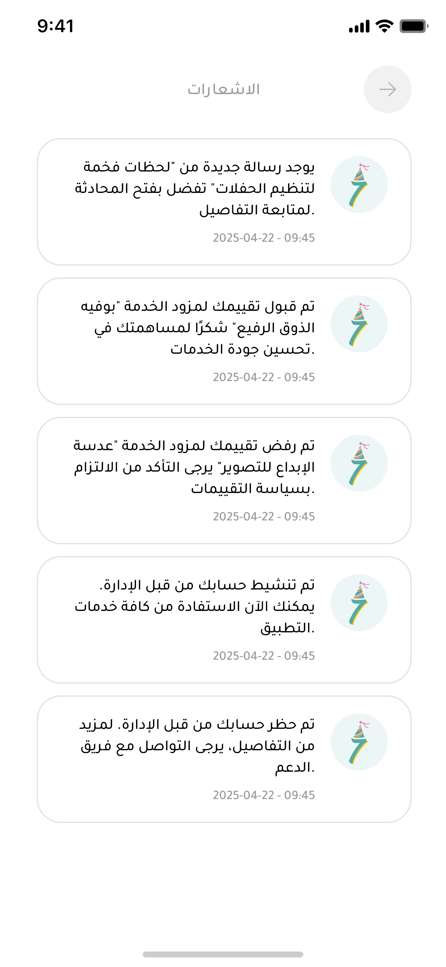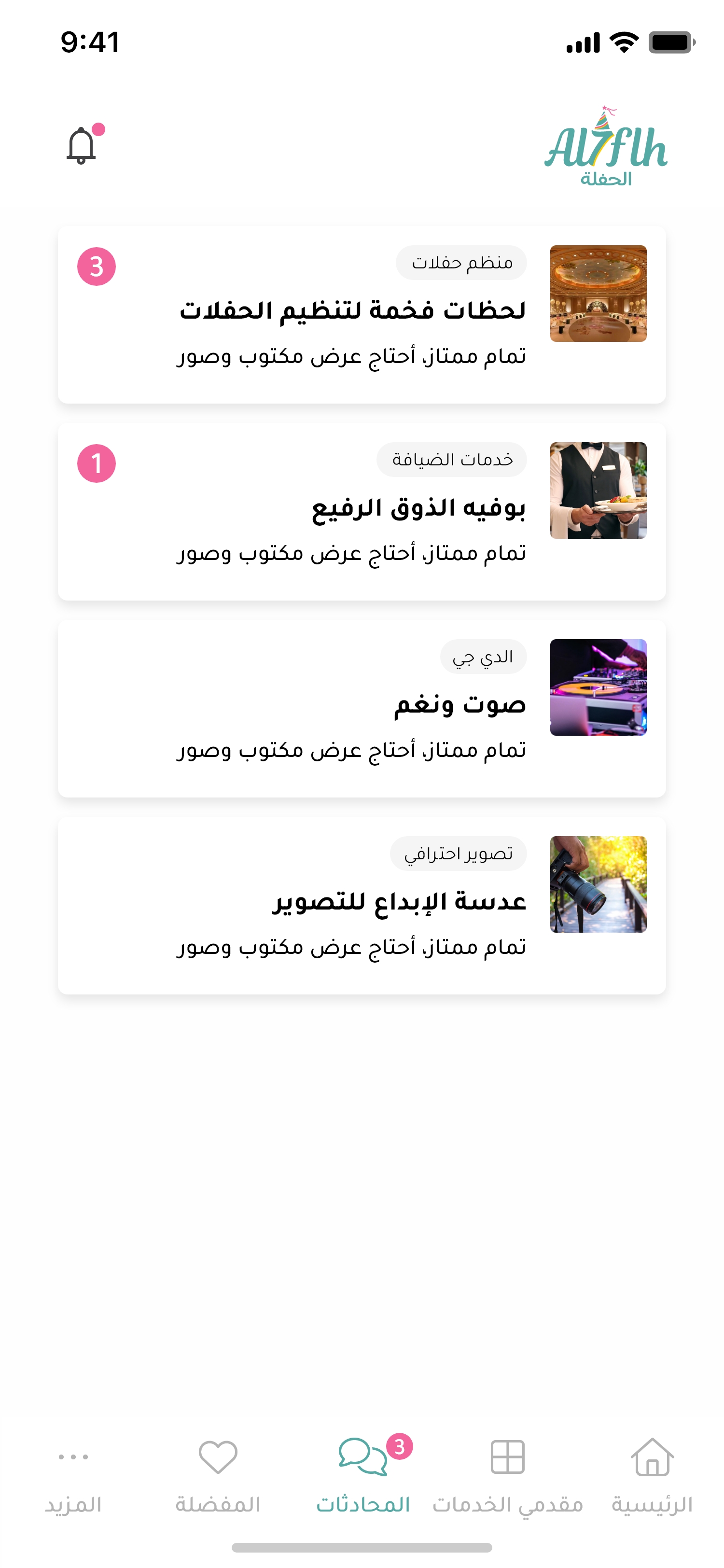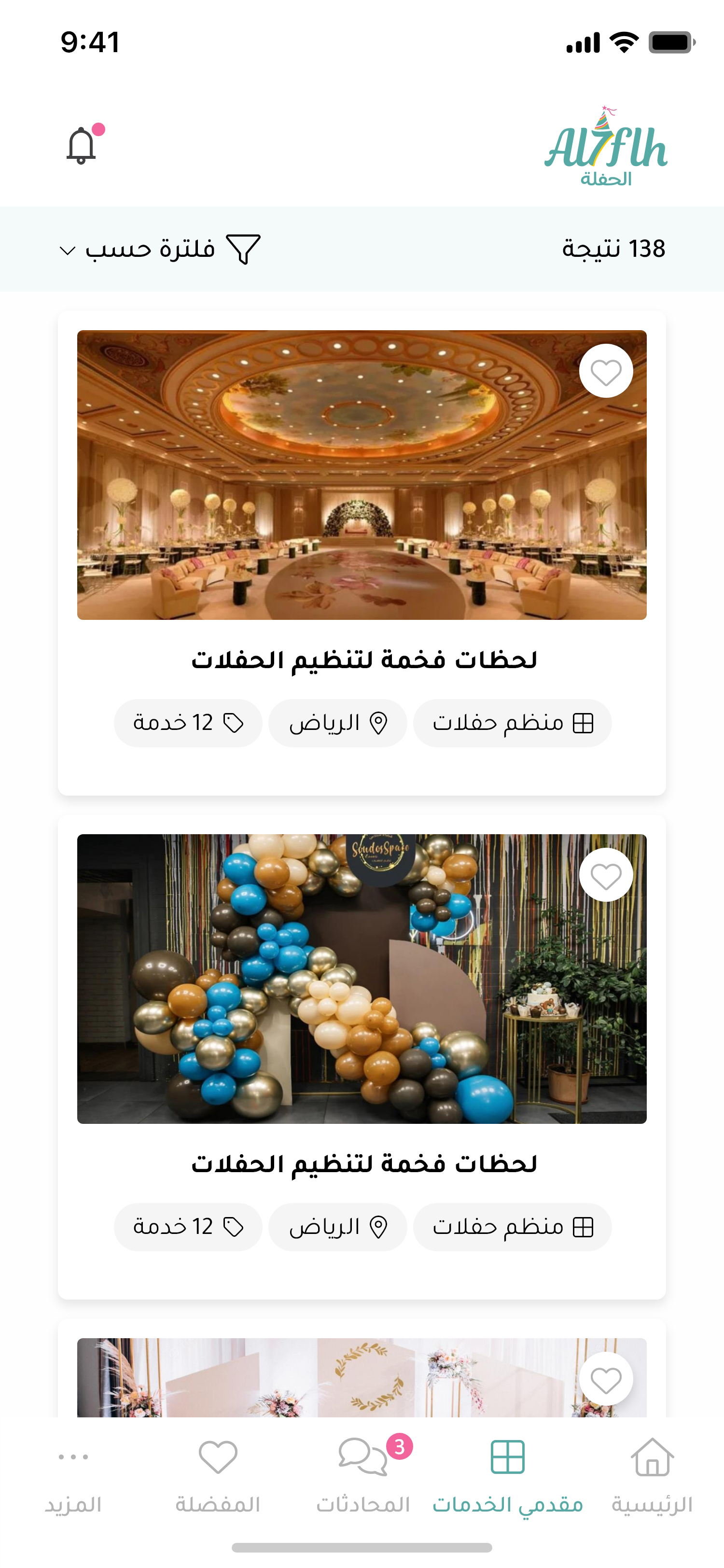 تطبيق "الحفلة | AL-Haflah " يربط بين مقدمي خدمات تنظيم الحفلات يتيح تصفح العروض، طلب أسعار، التواصل المباشر، الدفع الإلكتروني، وتحديد مواقع مقدمي الخدمة على الخريطة، لتسهيل تنظيم المناسبات من البداية للنهاية.